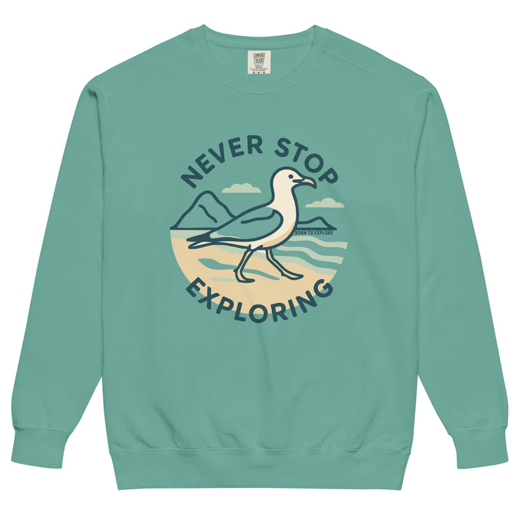 This design was inspired by a moment captured of a bold gull striding across the coast, this design captures the spirit of unapologetic exploration. Gulls remind us to move freely, take up space, and never shrink ourselves to fit in. This sweater is a reminder to stay curious, stay bold, and keep moving forward - wherever your path leads.